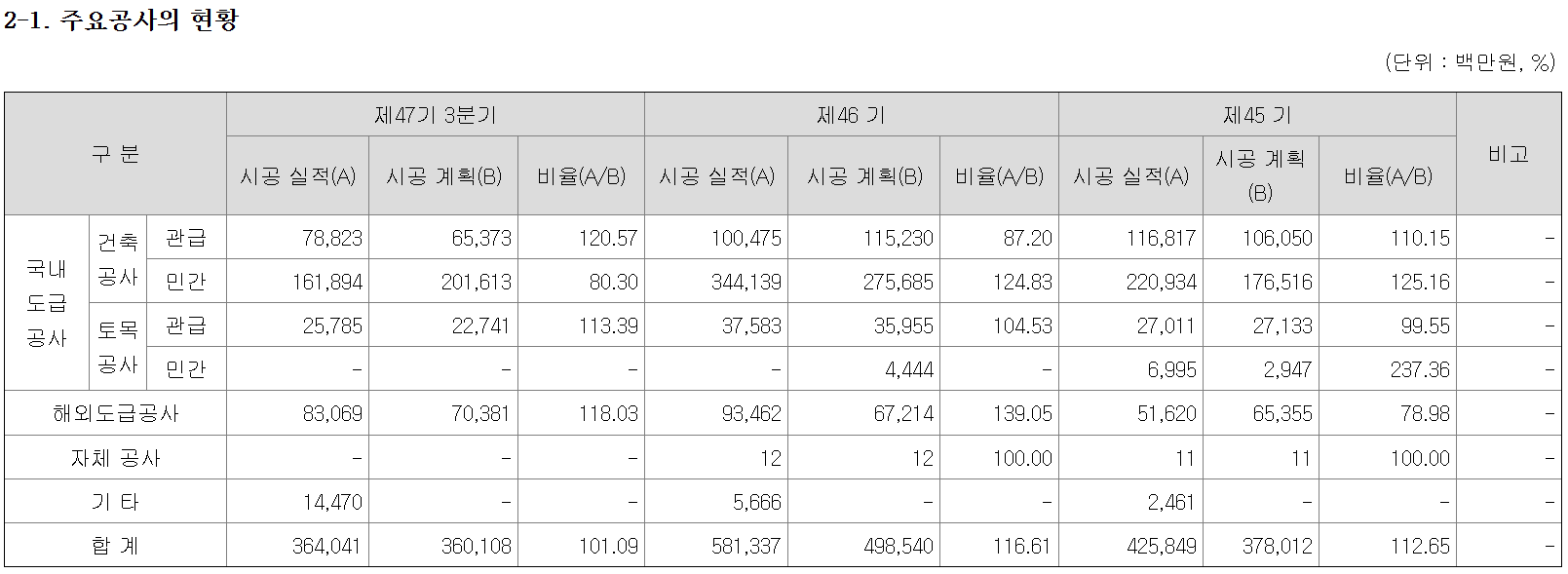 - 삼성전자, 삼성디스플레이 등 2023년 기업 업무시설 공사 등 B2B 공사의 비중은 29.74%임(2023년 매출액 기준).
